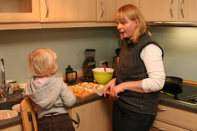 >Fik lige taget et par billeder igår under konfektfremstillingen.Elisabeth prøvesmager ALT og “hjalp” til med at vaske op (indtil stolen hun stod på var fuldstændig gennemblødt).