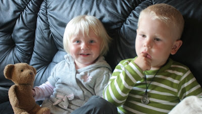 … og lige et billede af mine dejlige børn der sidder og ser Pingu… I ved den der modelervoks-pingvin der gør ligesom alle andre børn i 3-års-alderen.