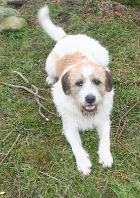 Her er han så, Laban: … og hvis der er nogen bud på hvilke racer han er blandet sammen af, skal det stå jer frit for at skrive løs i kommentarerne til dette indlæg. Jeg kan sige så meget at både hans mor og far er af ukendt blandet oprindelse. Både jeg og Brian er enige om at racen: “En landstrygerhund” passer rigtig godt på Laban. Han er en super familiehund og er rigtig god til at håndtere mødet med fremmede hunde (som der kommer ret mange af her på stedet). Træningsmæssigt er han meget villig! Ja, faktisk har han kun en “brist”, som vi sagtens kan leve med og det er at han bare SKAL skide på gulvtæpper hvis han kan komme til det (han blev vist ikke vænnet af med det som hvalp). Men da vi ikke har hunde indenfor i vores stuehus (pga. Emilies astma/allergi overfor husdyr med pels) og han altid er under “overvågning”/træning i hallen, kan han stort set ikke komme til at “gøre” på et gulvtæppe her på farmen.