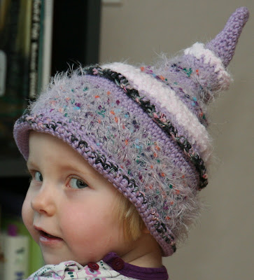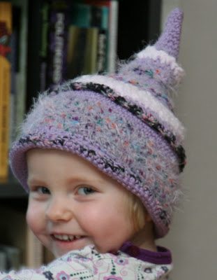 Lidt mere restegarn blev til denne pagodehue til Elisabeth, der har plaget om en siden Sebastian fik sin.